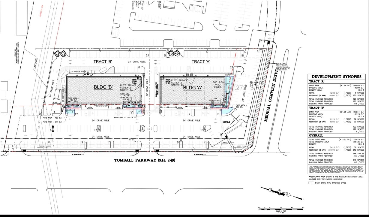 * Tomball Mercantile is located on the NEC of SH 249 & Medical Complex Dr. in Tomball, TX and is a new retail development at the entrance to the Tomball Medical Center (TMC) * TMC campus spans over 150 acres and boasts a 350 bed acute care hospital, Level III Trauma Center, Neonatal Intensive Care Unit, 5-Star 117,000 Cardiology and Heart Surgery facility, and numerous specialty centers such as Texas Sports Medicine Center, Women's Center, and Orthopedic Center * Tomball Regional Hospital is a major medical draw and the 2nd largest employer in Tomball (1,200 Employees) * The City of Tomball is home to more than 1,500 businesses and nearly 14,000 employees * Retail Building "A": 13,200 SF (End Cap w/Drive Thru Available) * Retail Building "B": 15,225 SF (End Cap w/Drive Thru Available) * Call for Lease Rates